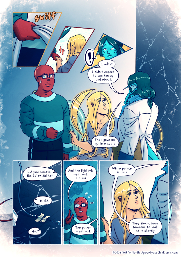 Doctor: The power went out. Whole palace is dark. They should have someone to look at it shortly.