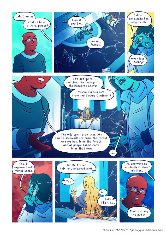 Doctor: I must say I’m… shocked, frankly. I didn’t anticipate him being awake… much less talking! It’s not quite matching the findings of the Research Sector. You’re certain he’s from the Sacred Continent?